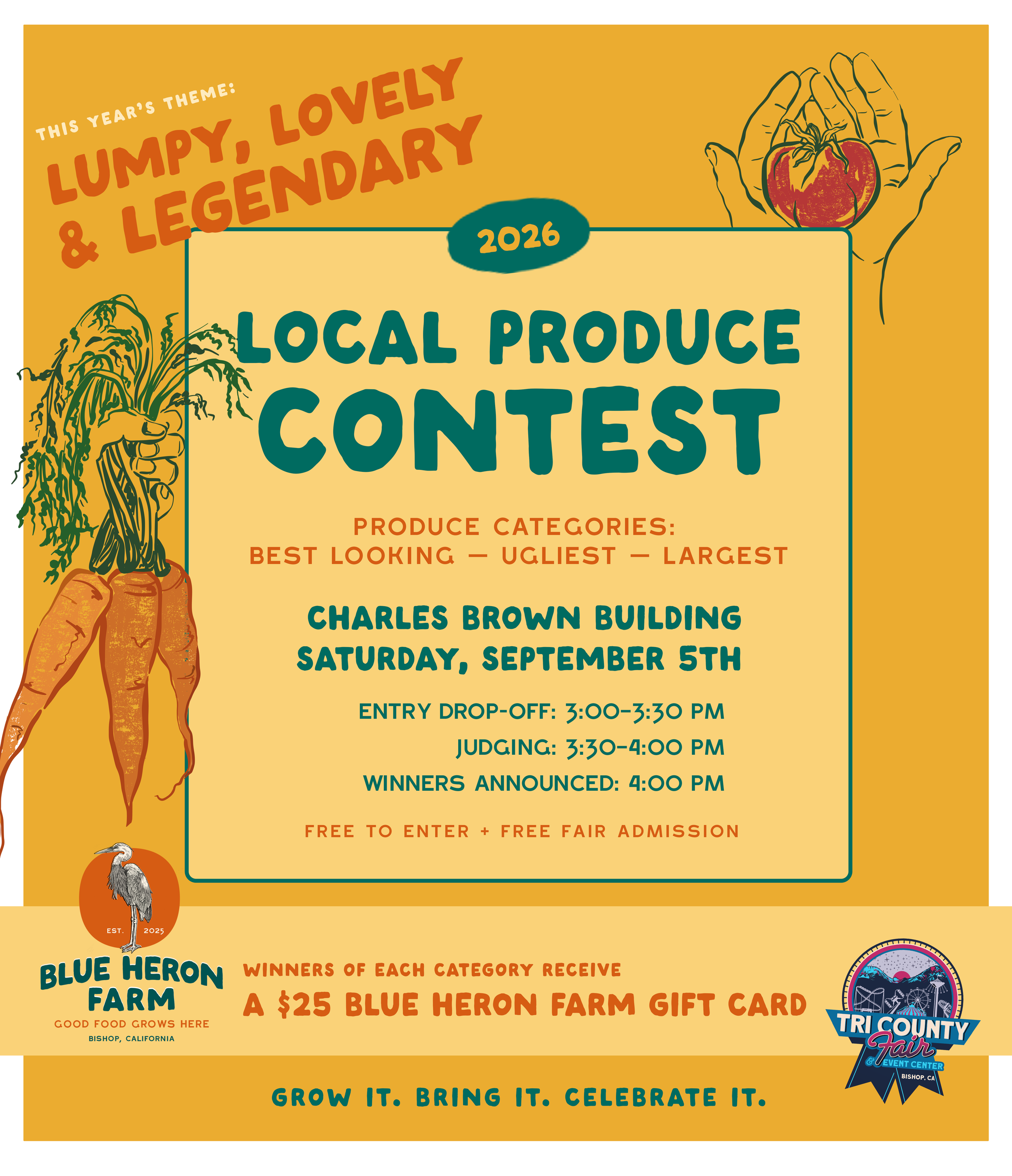 Bonus: Free fair admission with contest entry. Just bring your produce to the front gate and let them know you are submitting an entry for the Local Produce Contest.